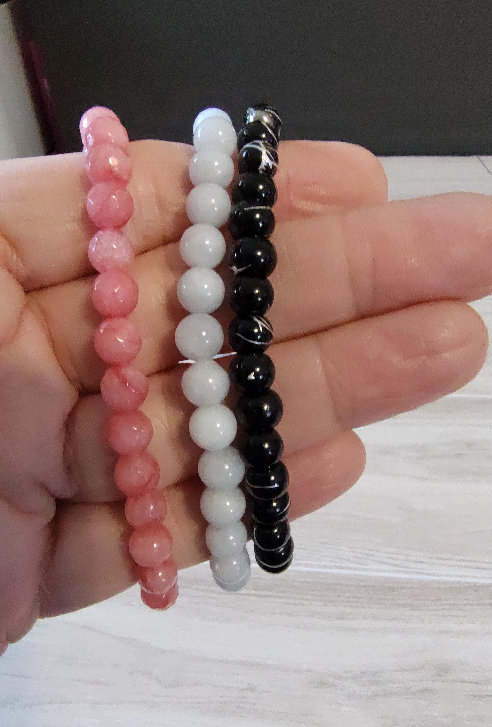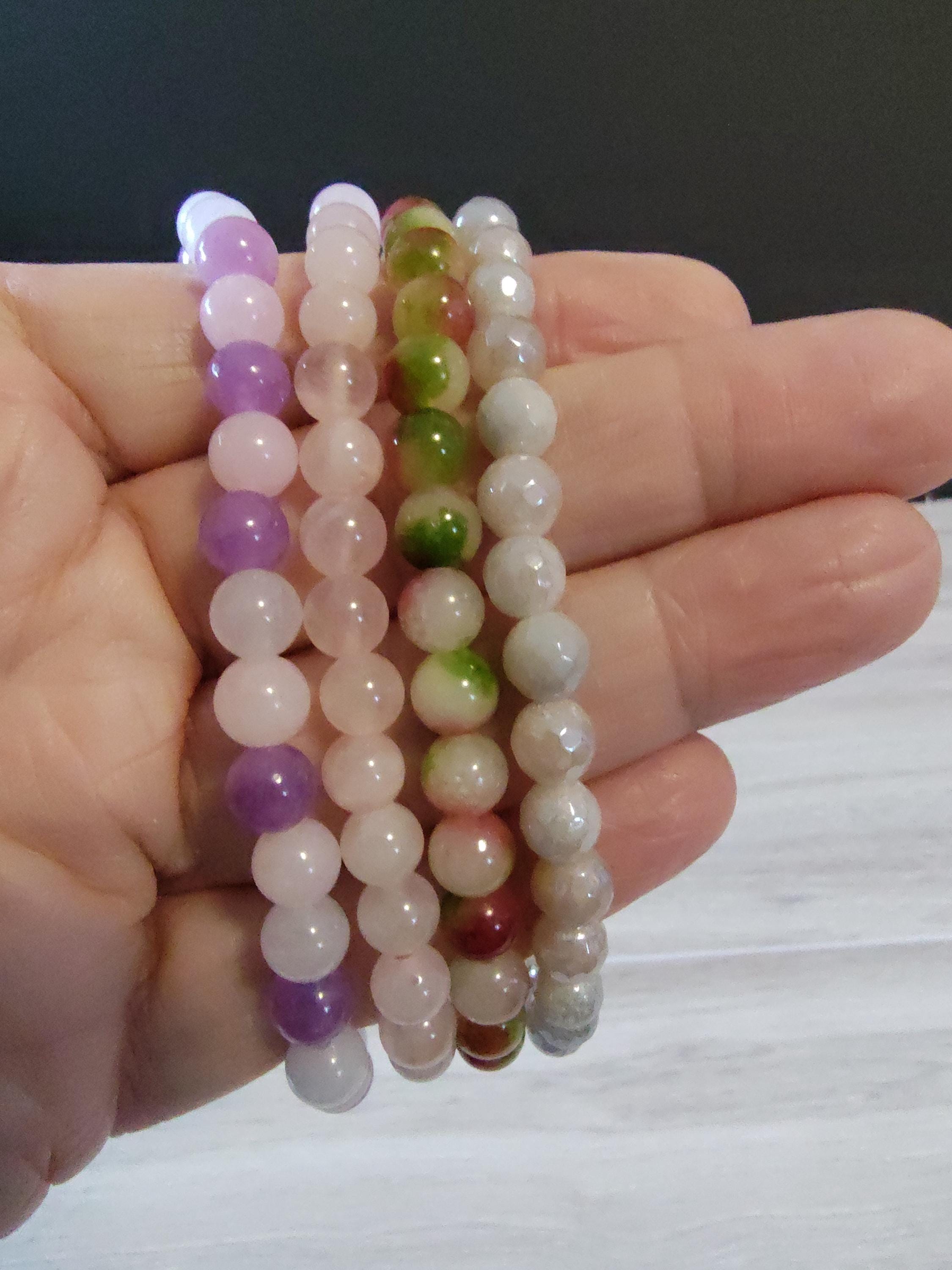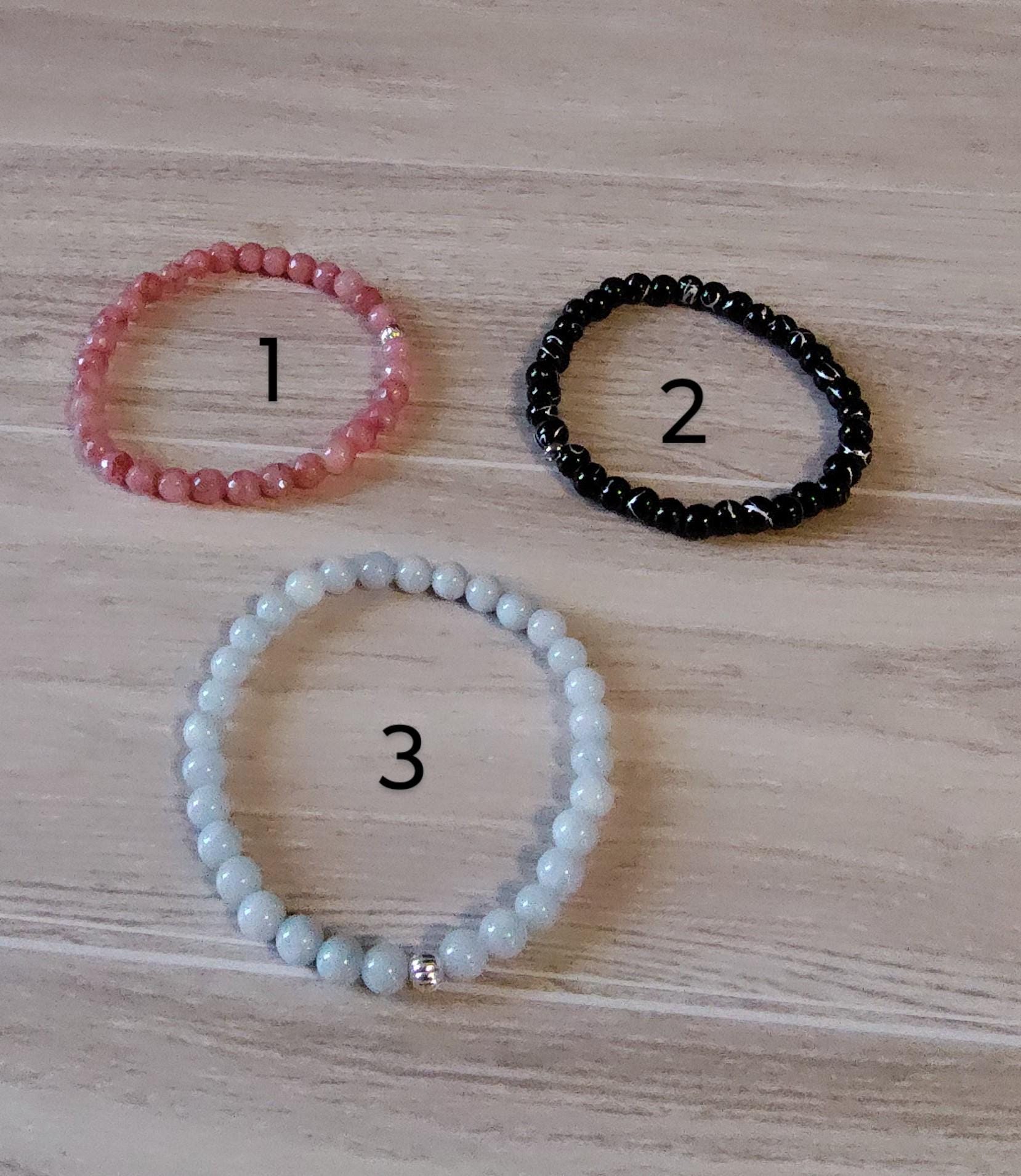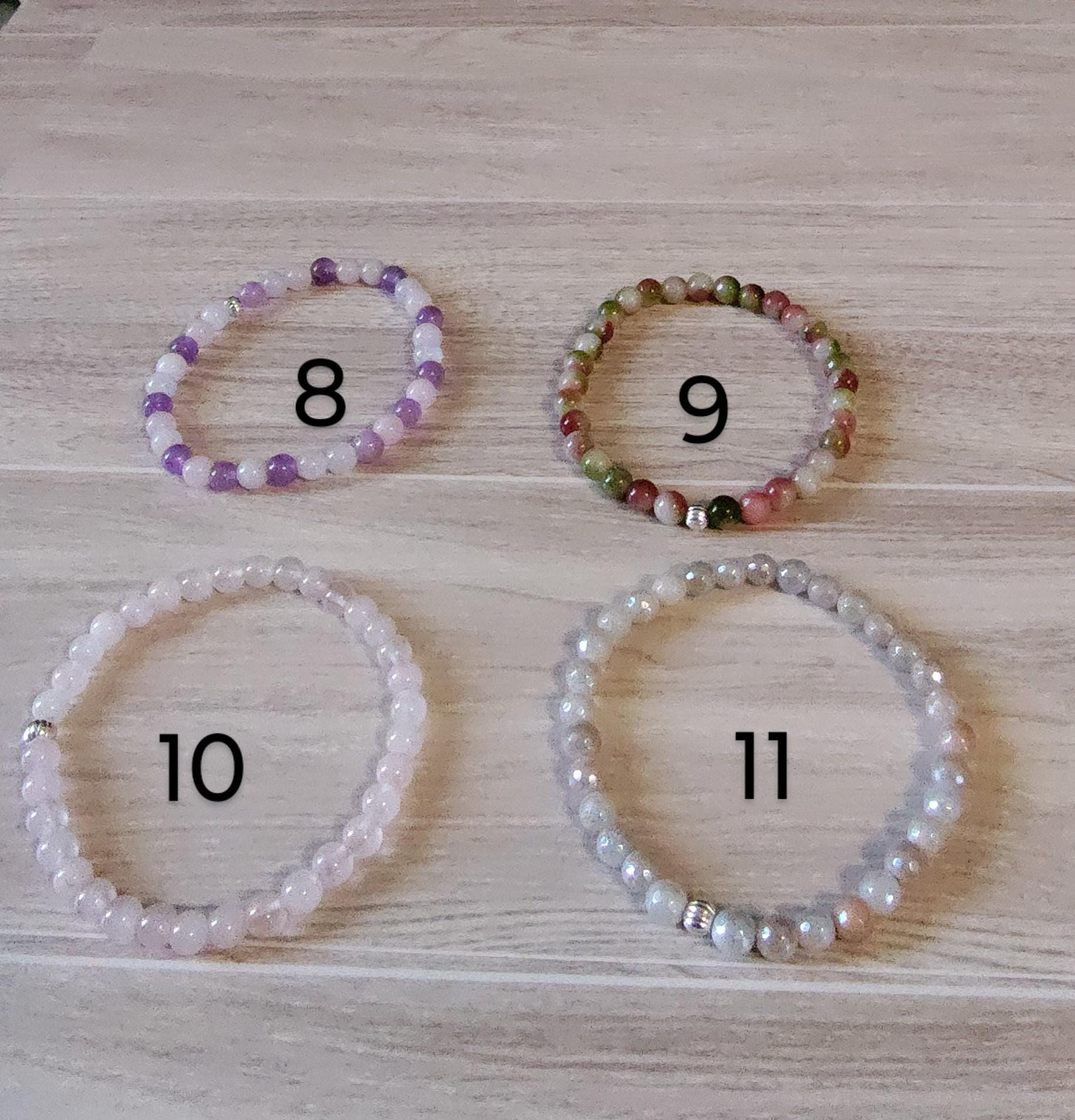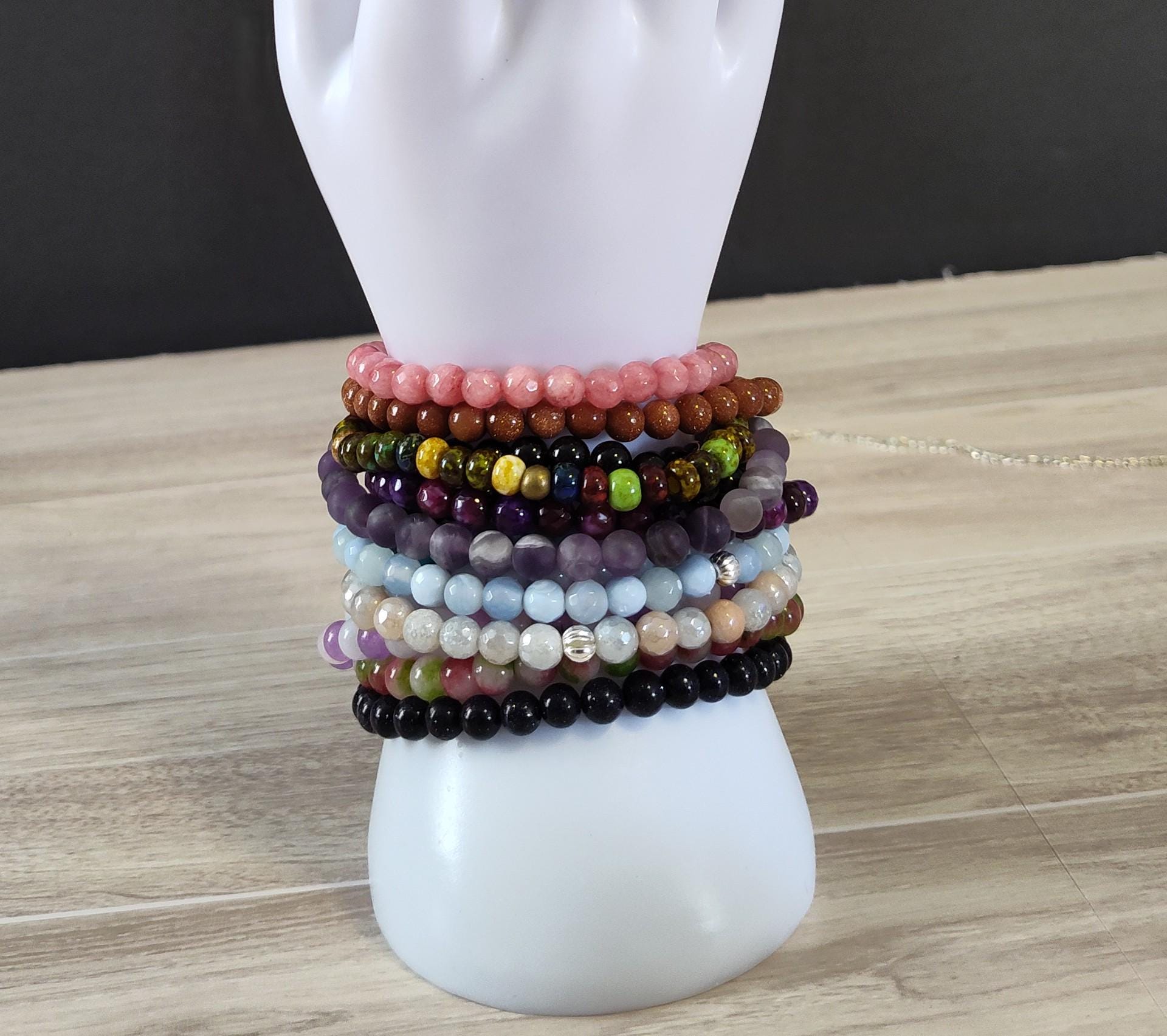 Stackable!! These bracelets are made with 6mm gemstone beads and are 7 1/2". Perfect size for stacking! Choose the gemstone you want in the drop down box.