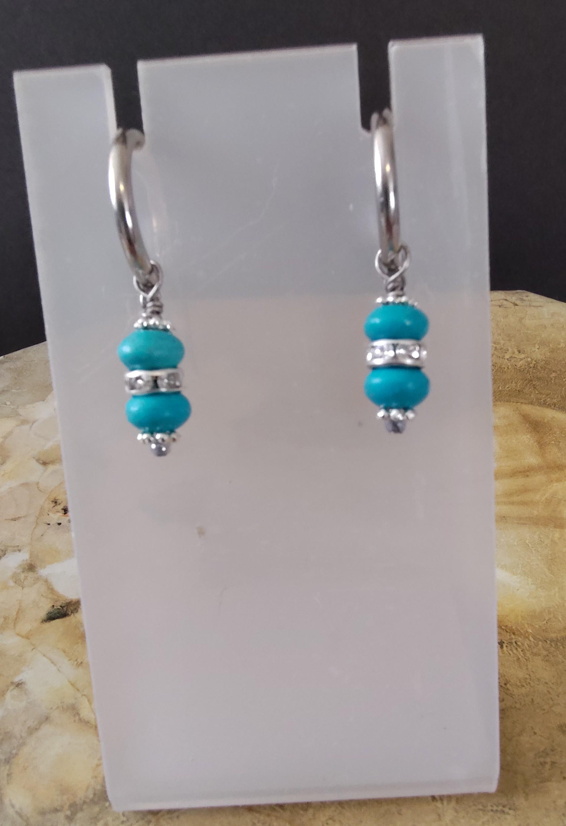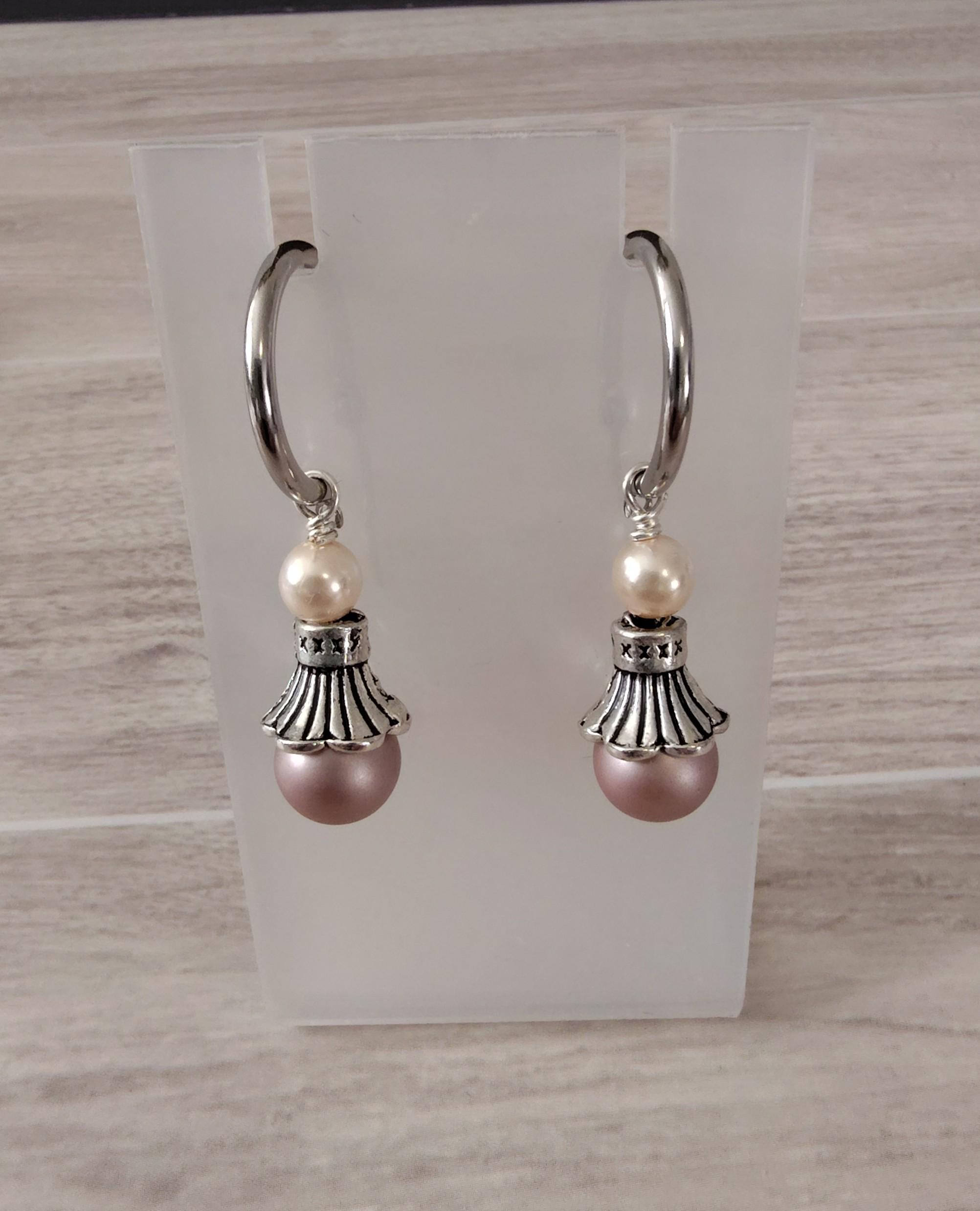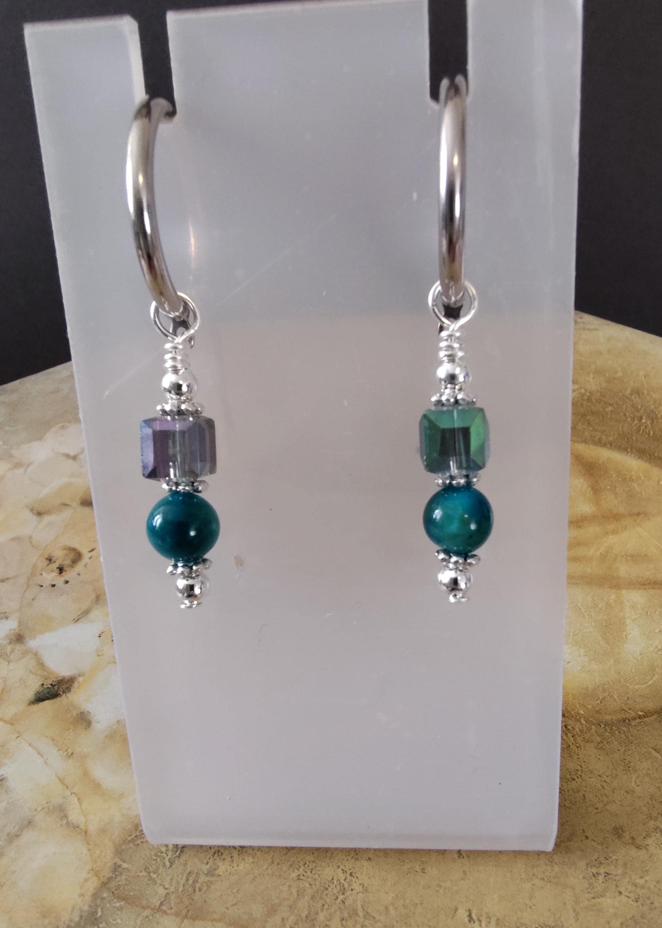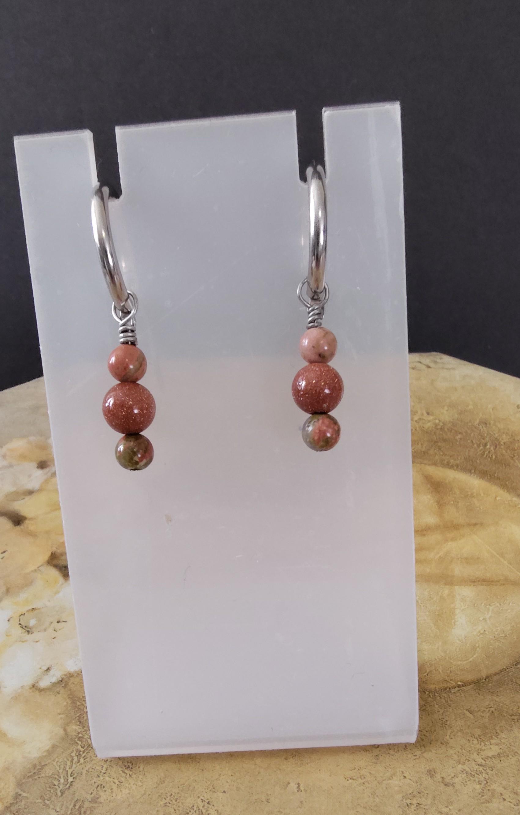 Several pairs of interchangeable earrings using semi-precious gemstones, Preciosa Pearls and glass beads and they are designed to be used with hoop earrings. I will be adding new earring sets regularly.