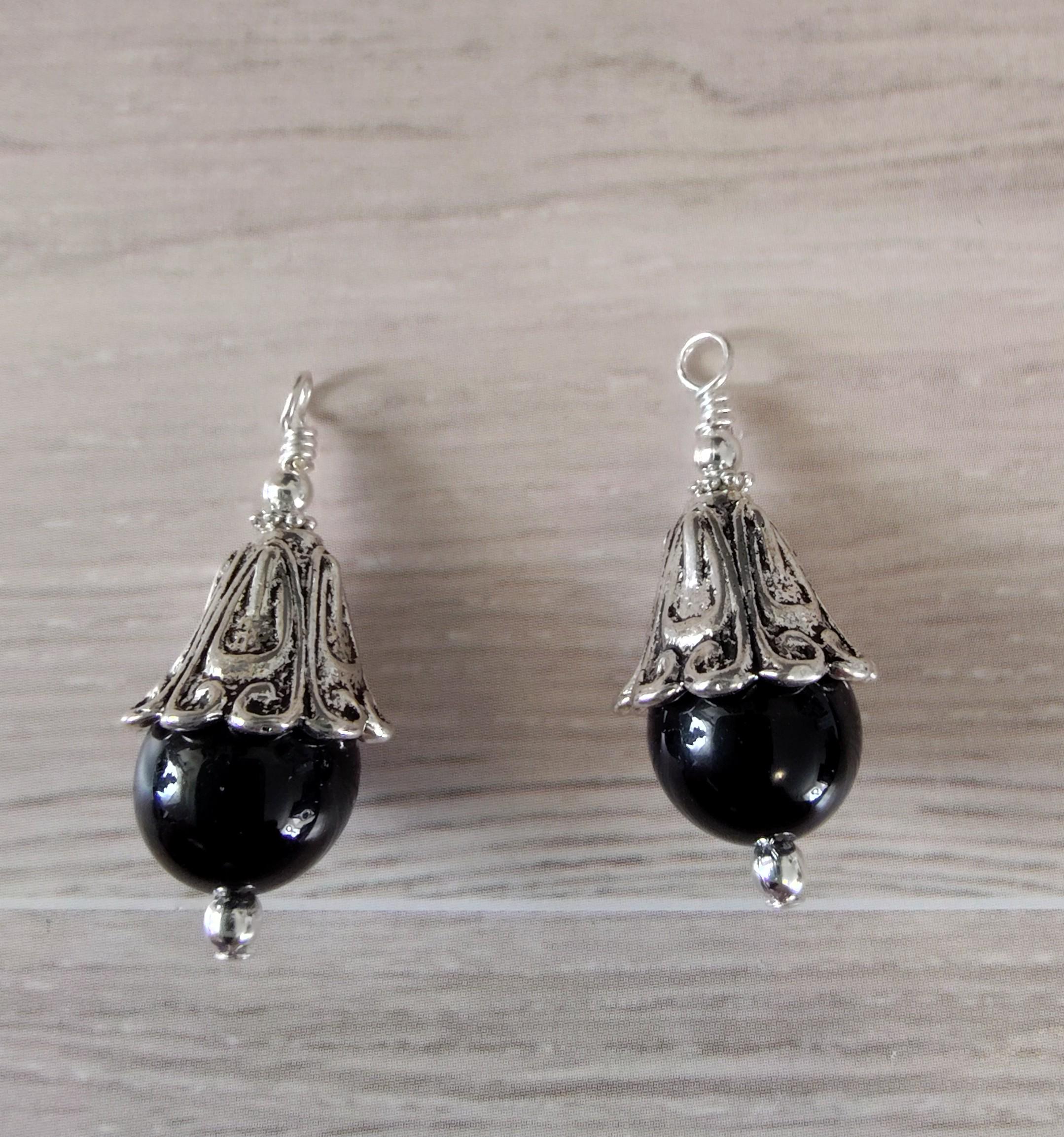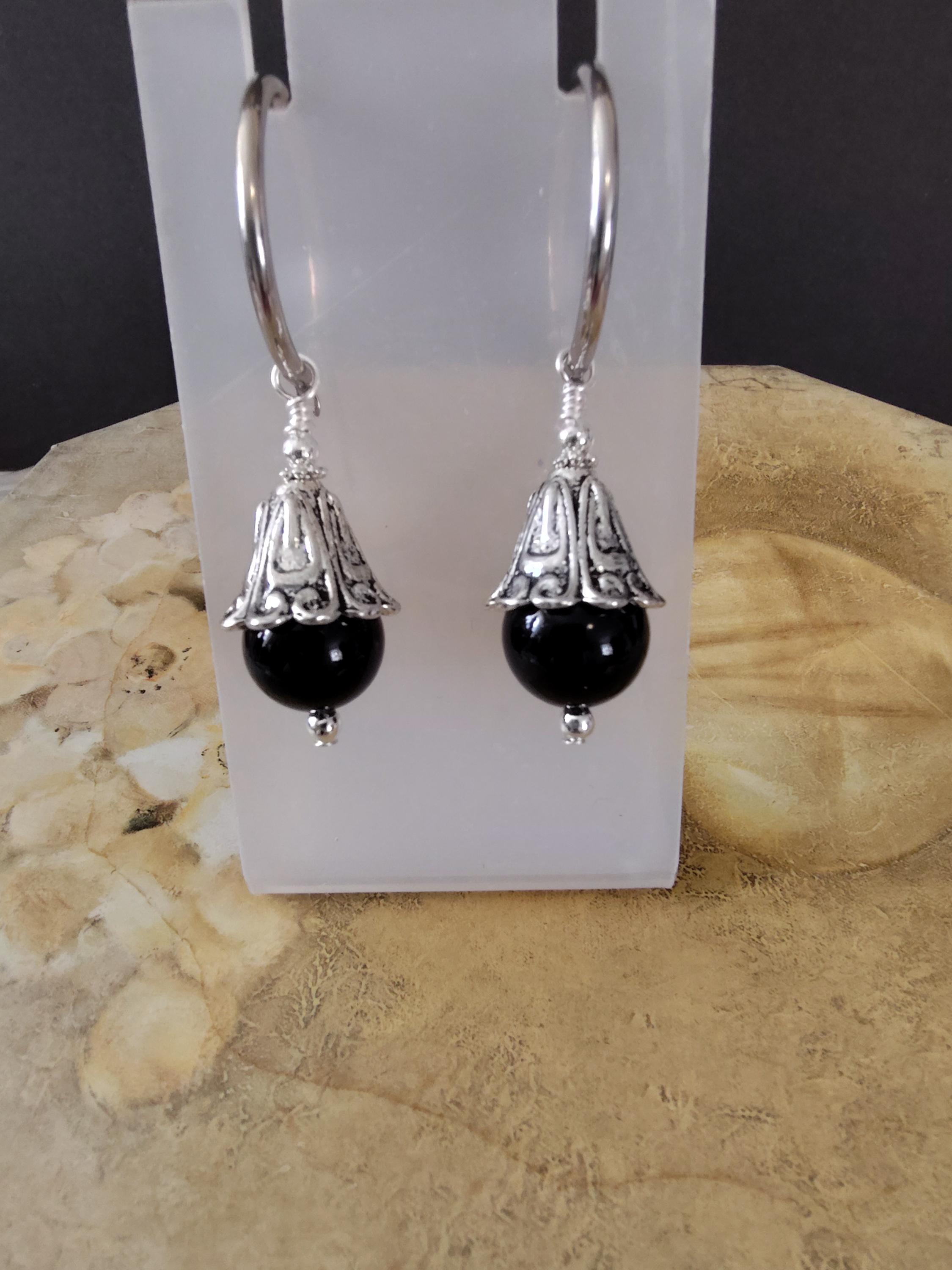 5. 10mm Black Onyx and decorative silver plated beadcaps