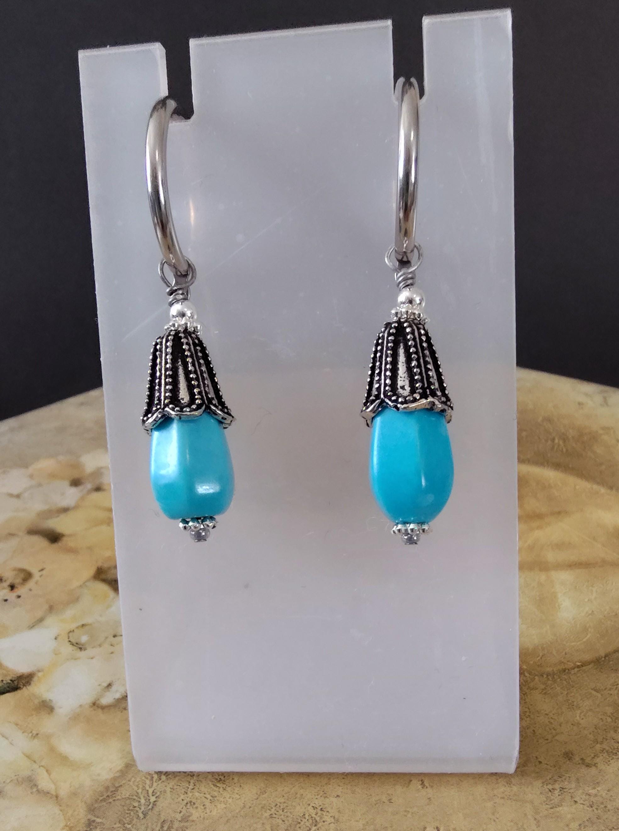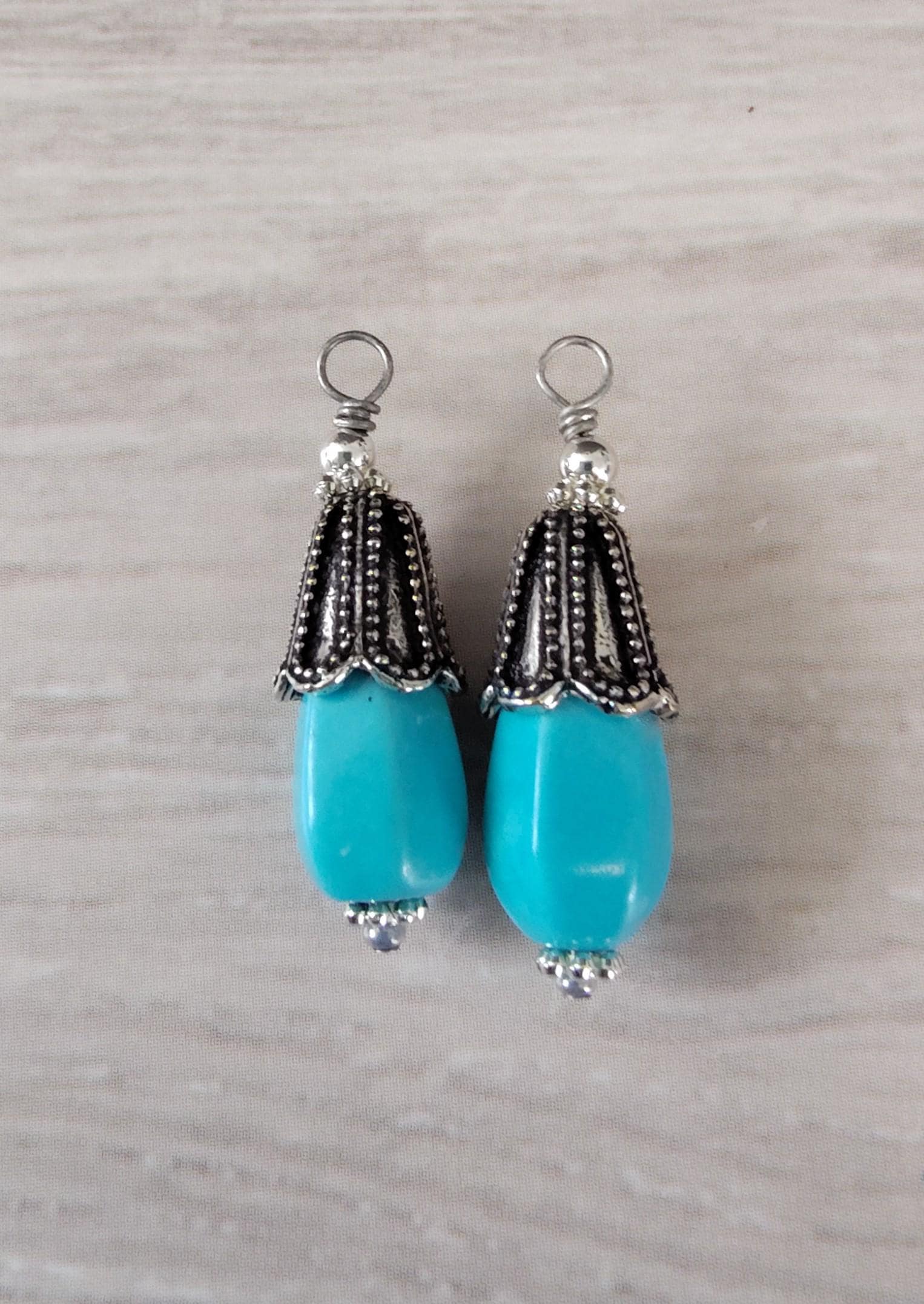 3. 20mm x 8mm Turquoise Teardrops and decorative silver plated beadcaps