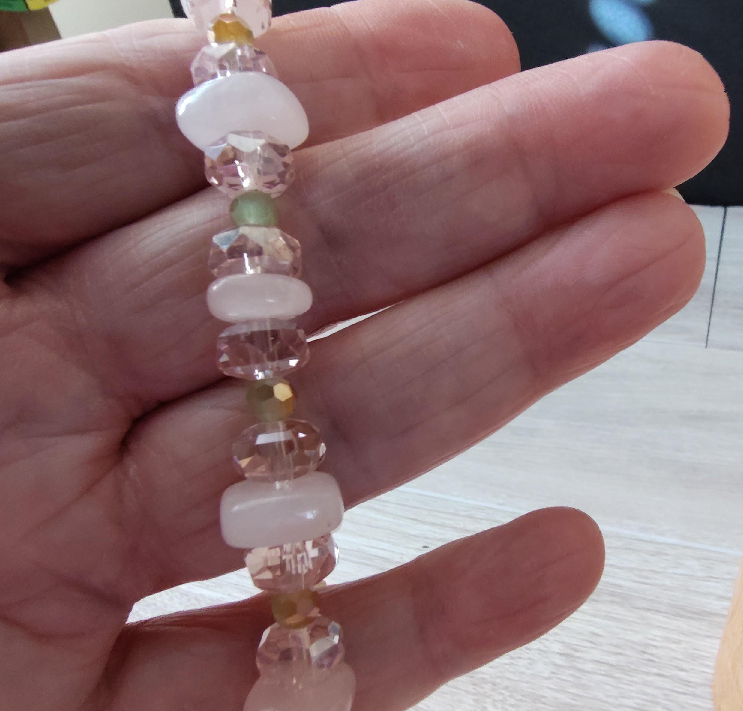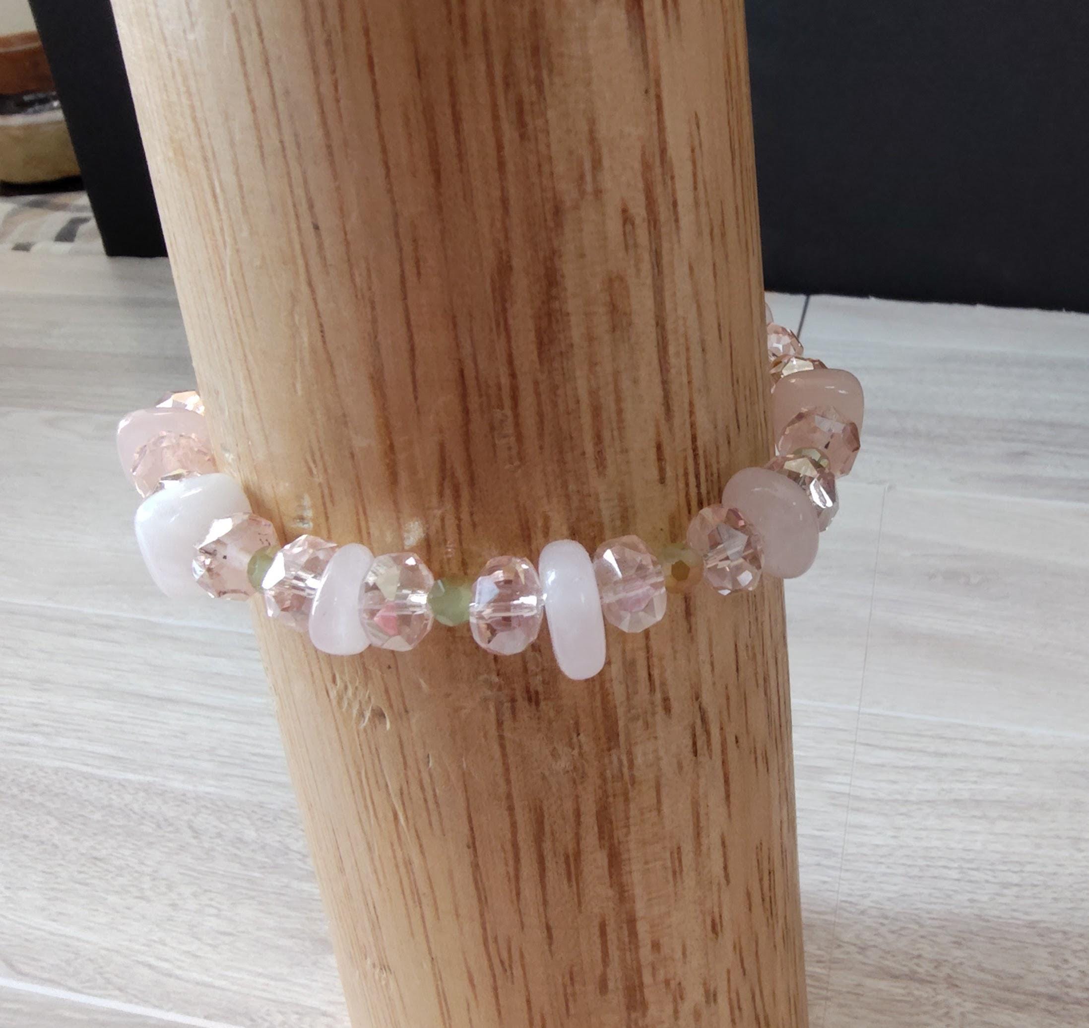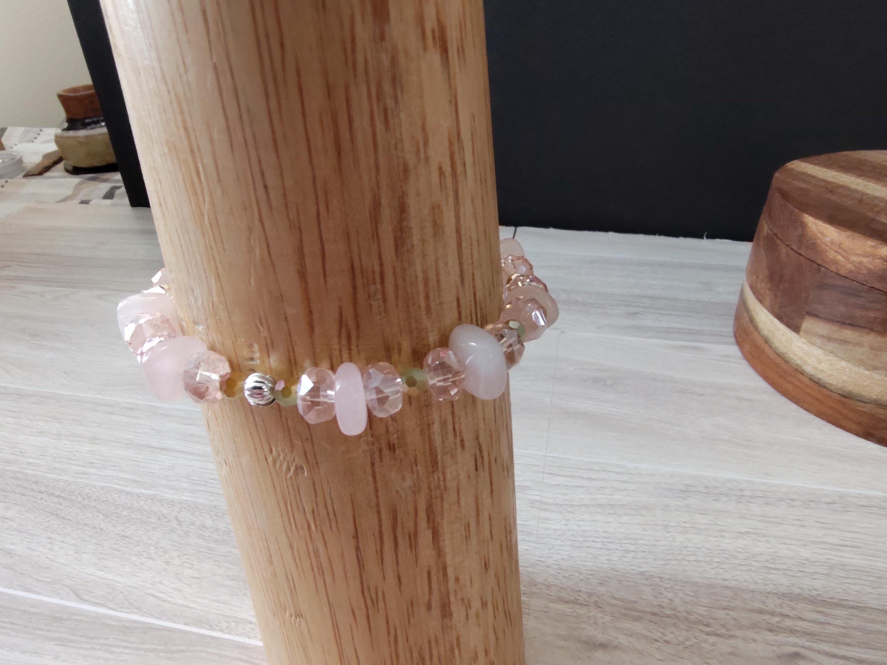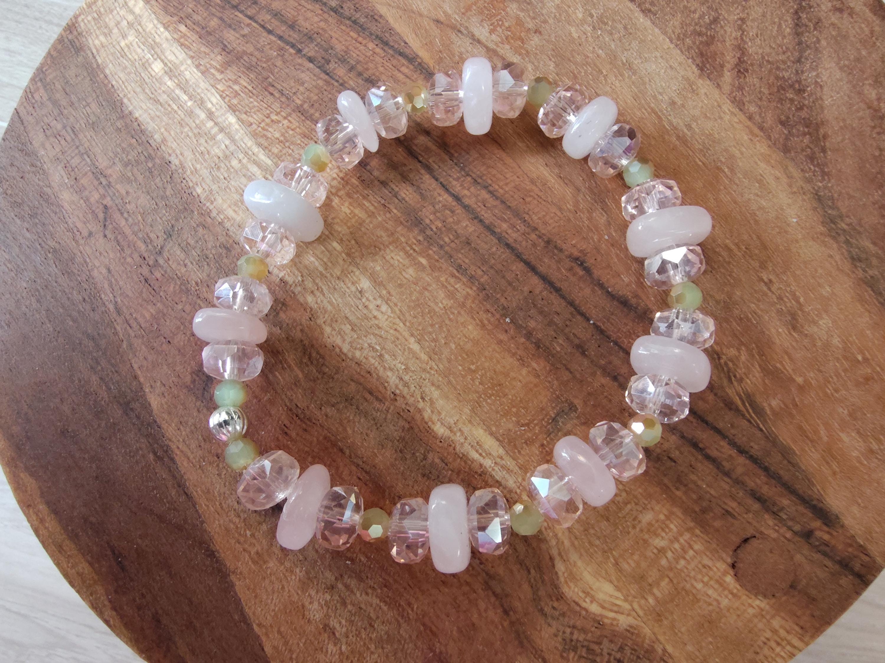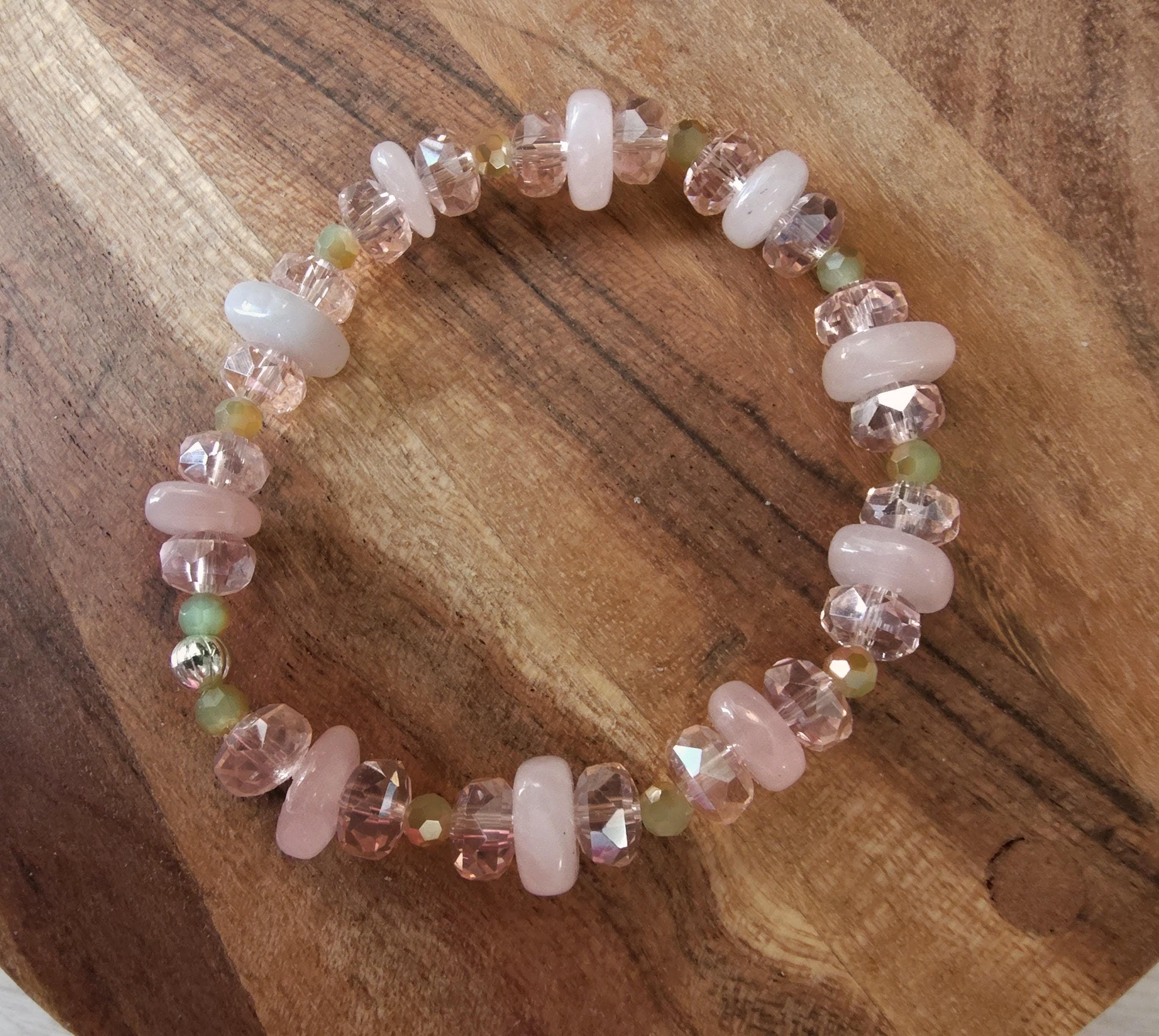 Rose quartz nuggets (various sizes) and 8mm pink faceted glass crystal rondelles.